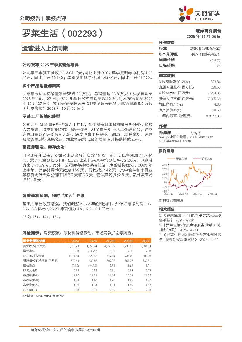 罗莱生活:天风证券-罗莱生活-002293-运营进入上行周期-251105