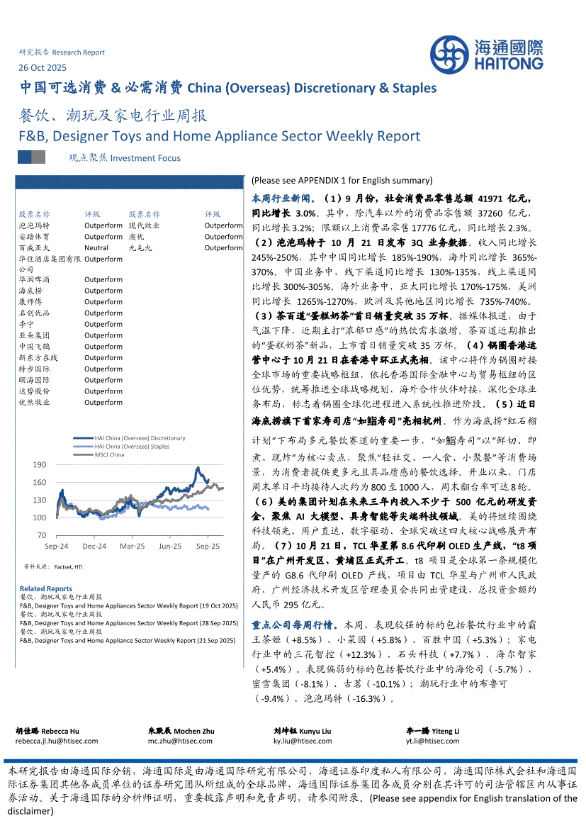海通国际-中国必需消费&可选消费行业:餐饮、潮玩及家电行业周报-251012