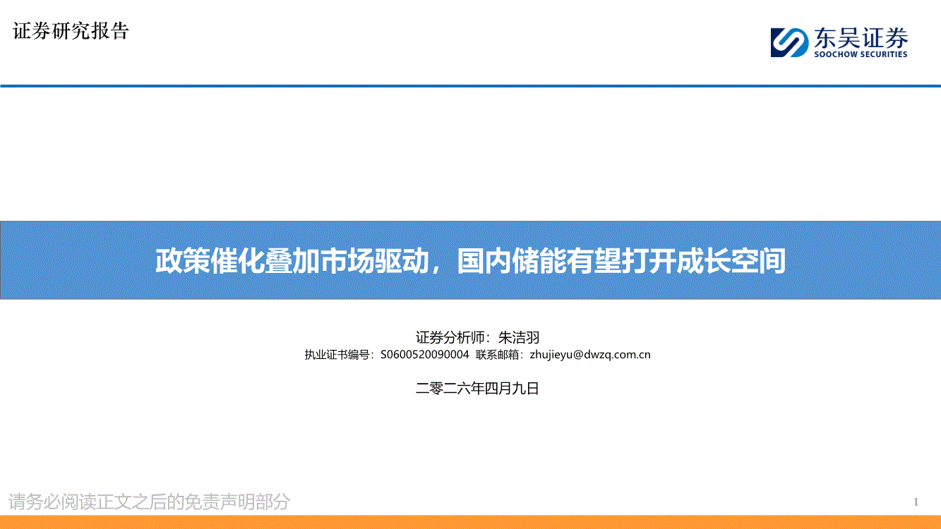 储能行业:东吴证券-储能行业:政策催化叠加市场驱动,国内储能有望打开成长空间-260409