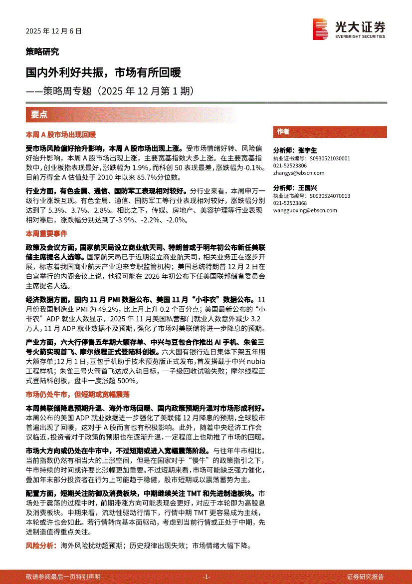光大证券-策略周专题(2025年12月第1期):国内外利好共振,市场有所回暖-251206