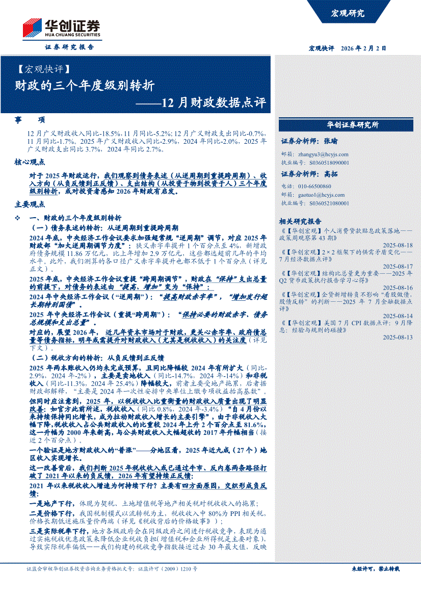 华创证券-【宏观快评】12月财政数据点评:财政的三个年度级别转折-260202