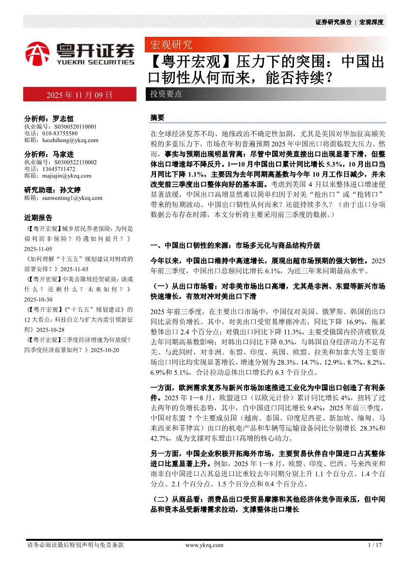 粤开证券-【粤开宏观】压力下的突围:中国出口韧性从何而来,能否持续?-251109