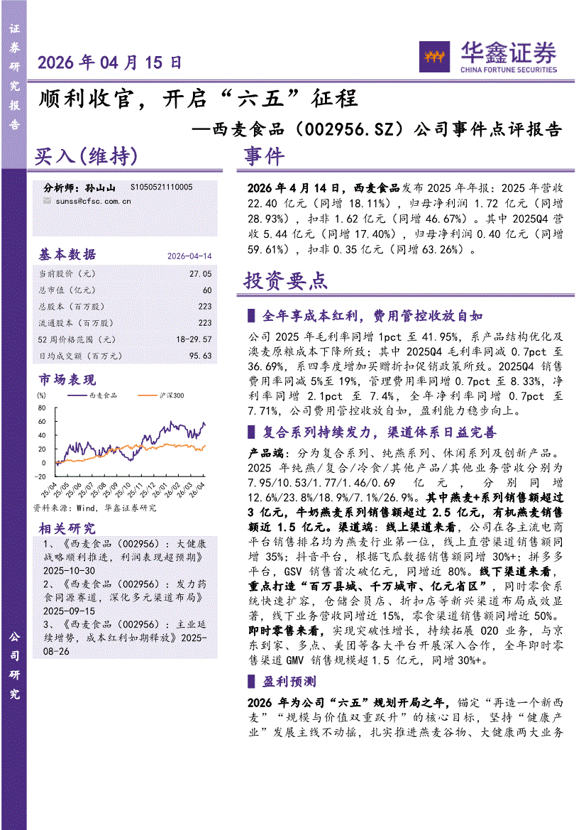 华鑫证券-西麦食品-002956-公司事件点评报告:顺利收官,开启“六五”征程-260415