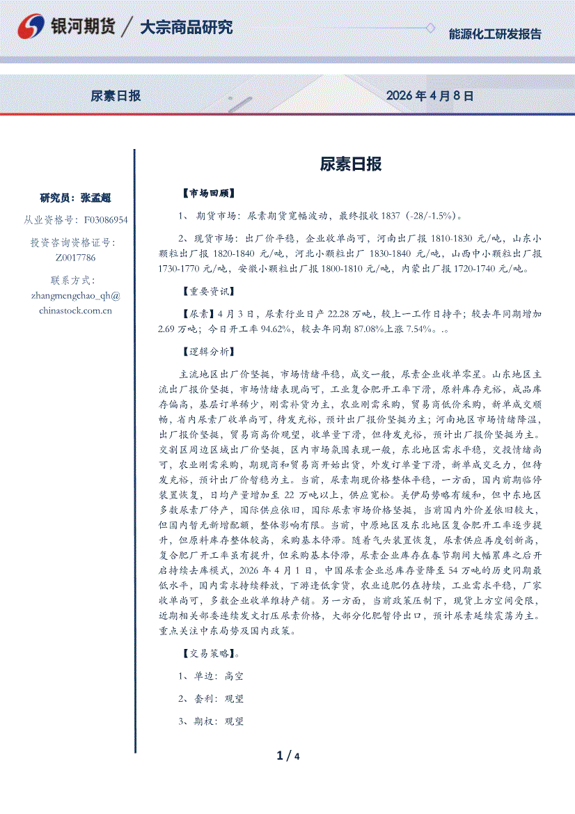 银河期货-专题报告:东北供需分析及尿素后市展望-260417