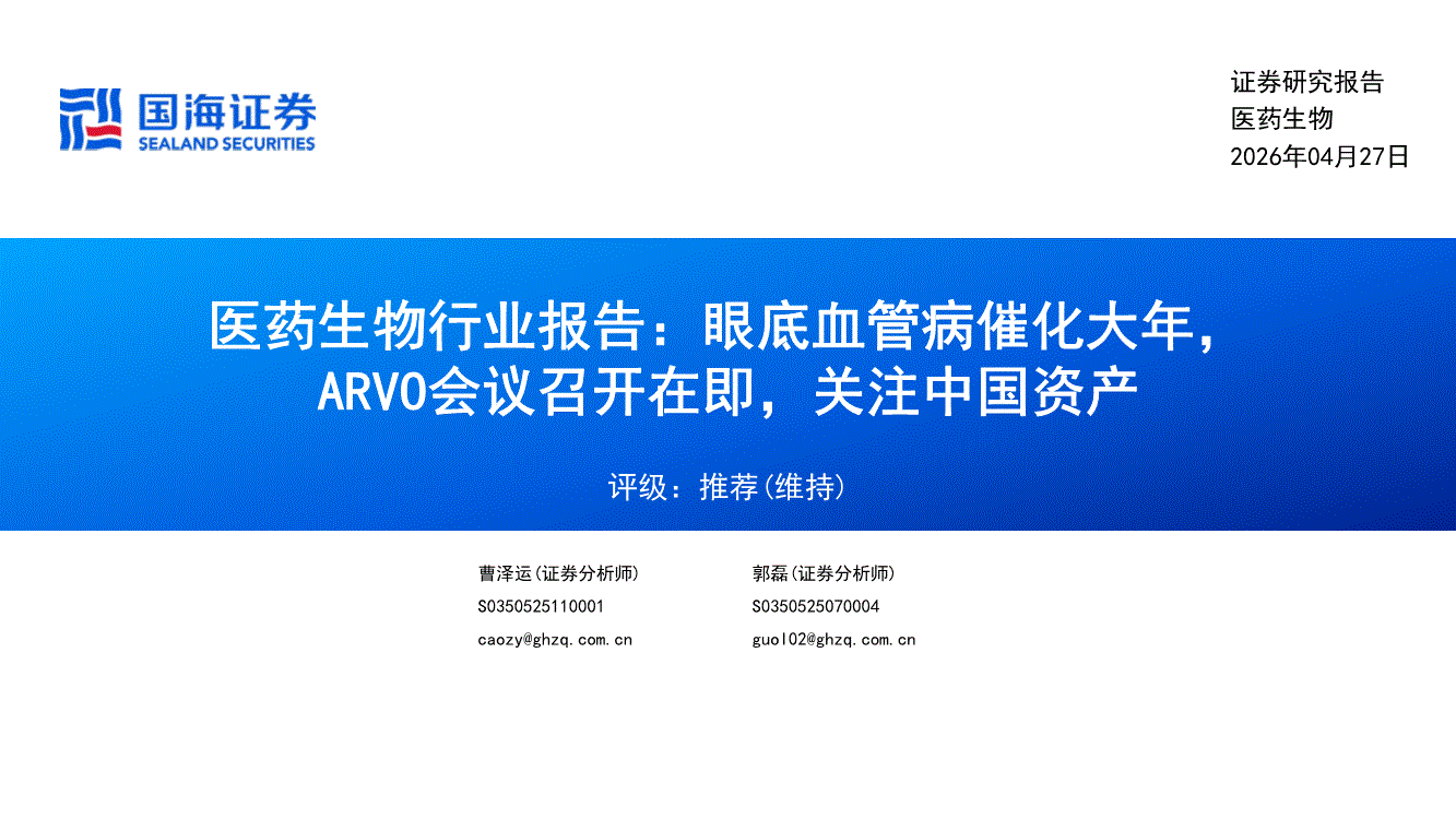医药生物行业:国海证券-医药生物行业报告:眼底血管病催化大年,ARVO会议召开在即,关注中国资产-260427