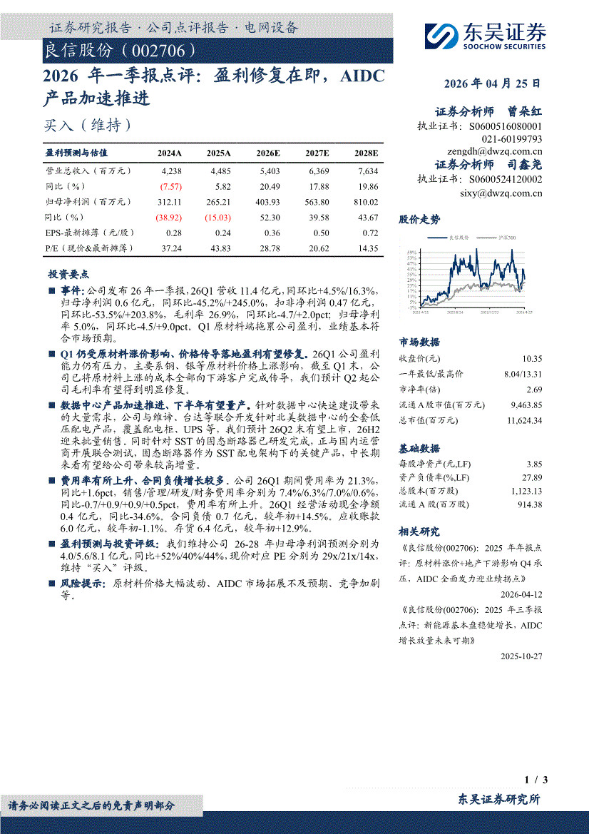 良信股份:东吴证券-良信股份-002706-2026年一季报点评:盈利修复在即,AIDC产品加速推进-260425