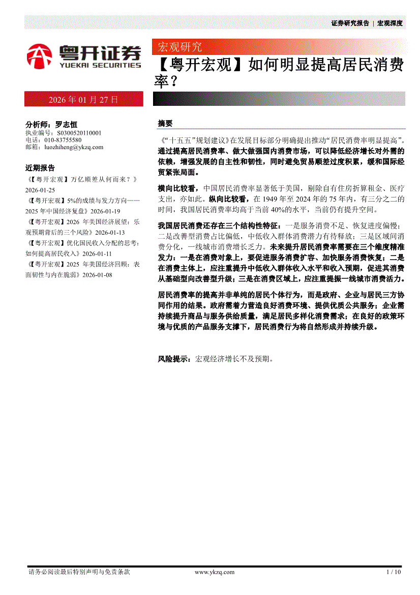 粤开证券-【粤开宏观】如何明显提高居民消费率?-260127