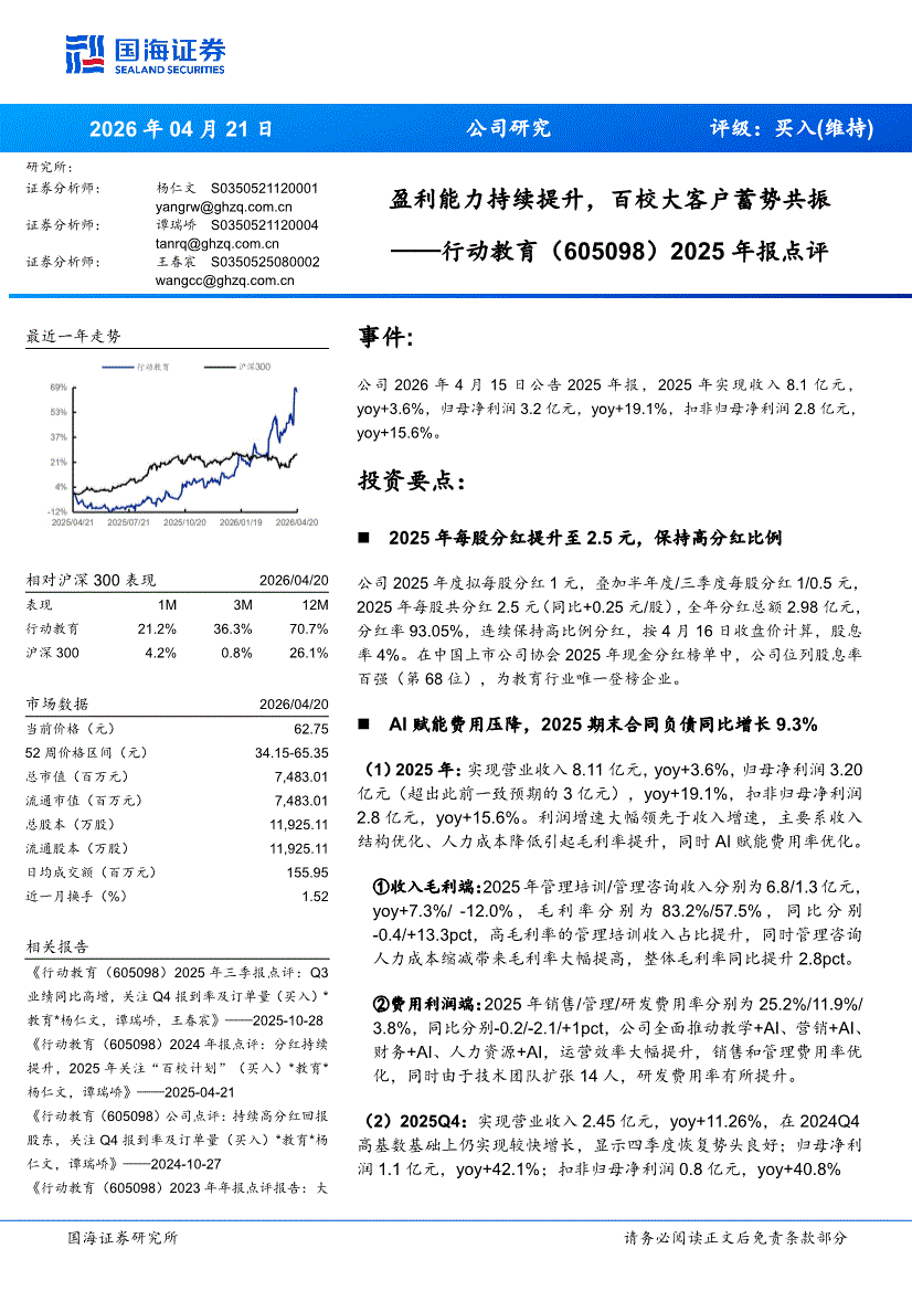 行动教育:国海证券-行动教育-605098-2025年报点评:盈利能力持续提升,百校大客户蓄势共振-260421