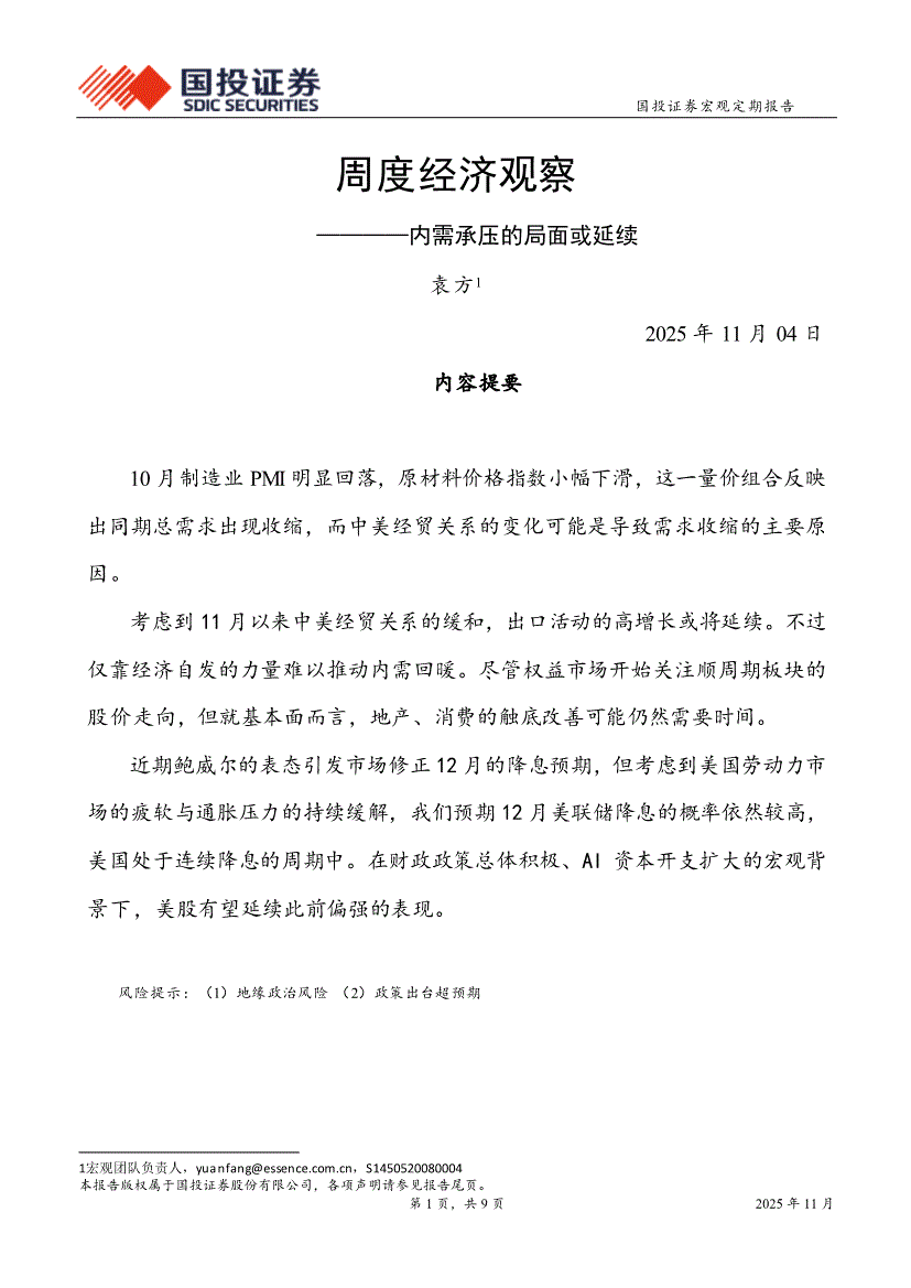国投证券-周度经济观察:内需承压的局面或延续-251104