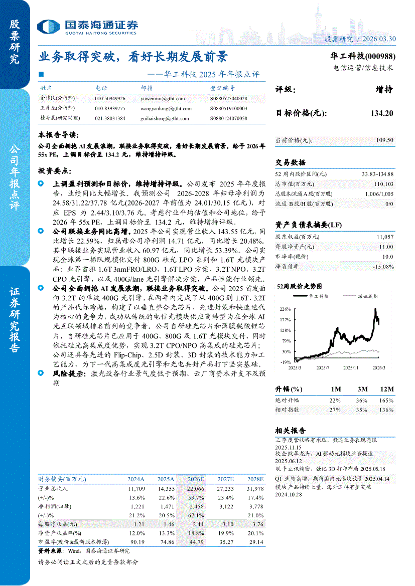 华工科技:国泰海通证券-华工科技-000988-2025年年报点评:业务取得突破,看好长期发展前景-260330