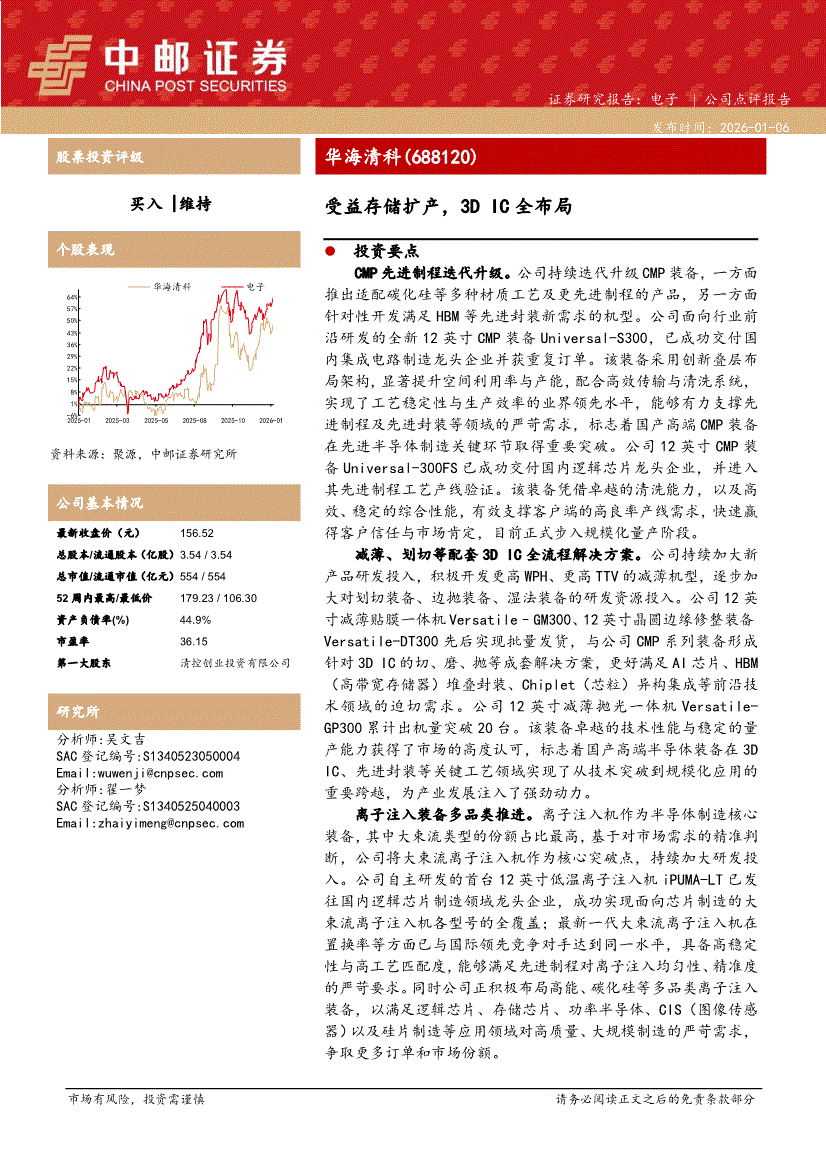 华海清科:中邮证券-华海清科-688120-受益存储扩产,3D IC全布局-260106