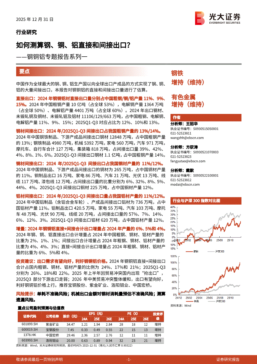 钢铜铝行业:光大证券-钢铜铝行业专题报告系列一:如何测算钢、铜、铝直接和间接出口?-251231