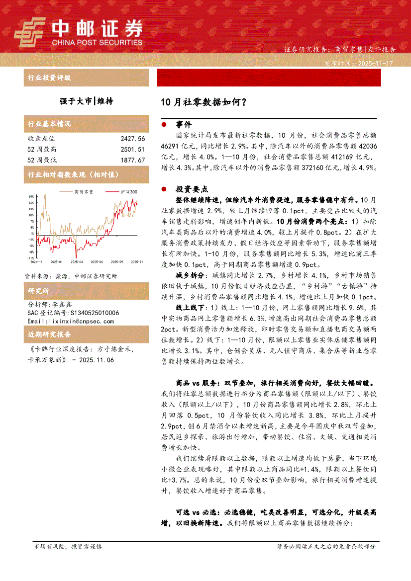 商贸零售行业:中邮证券-商贸零售行业:10月社零数据如何?-251117