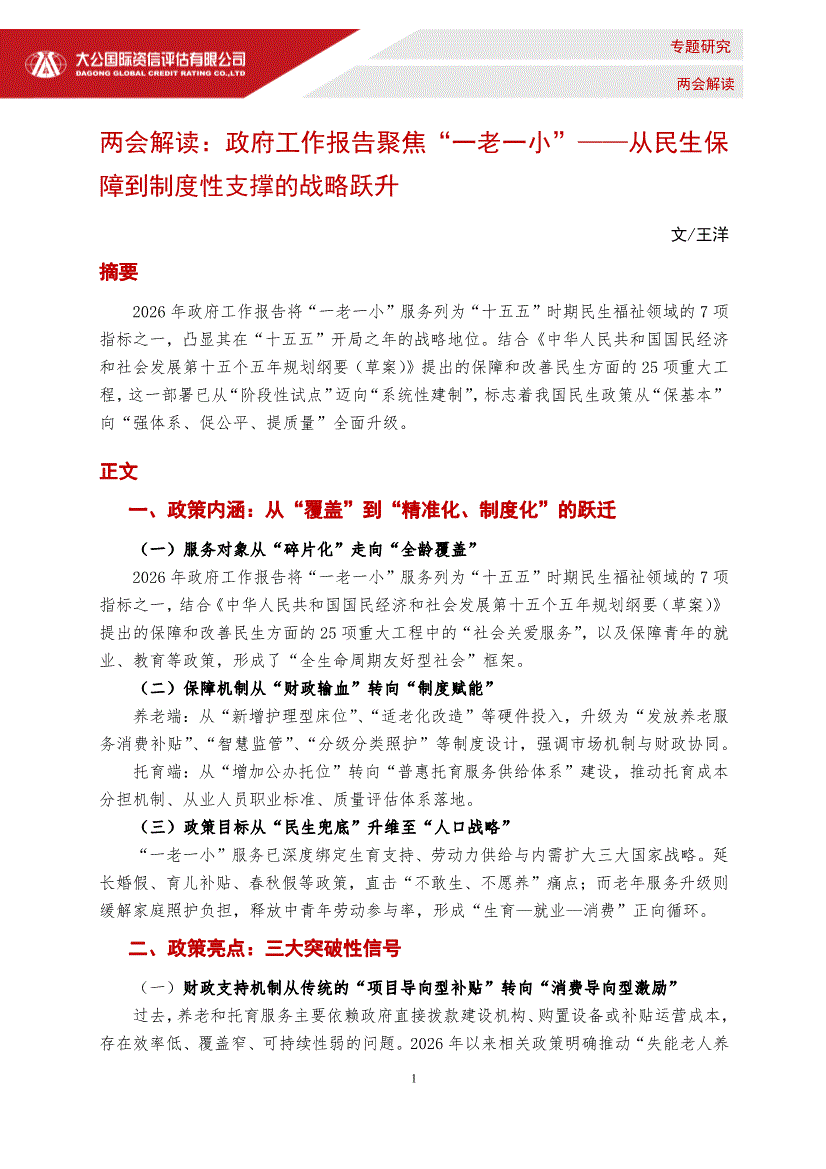 大公国际-两会解读:政府工作报告聚焦“一老一小”——从民生保障到制度性支撑的战略跃升-260310