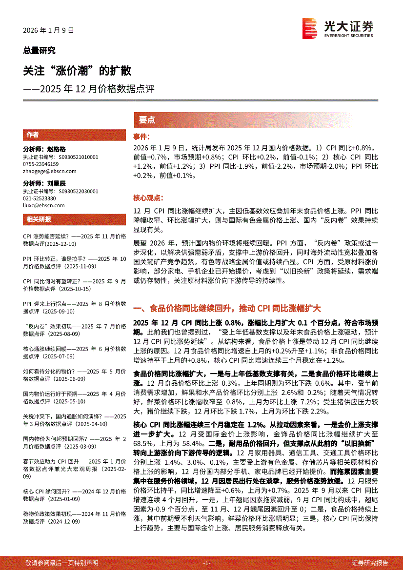 光大证券-2025年12月价格数据点评:关注“涨价潮”的扩散-260109