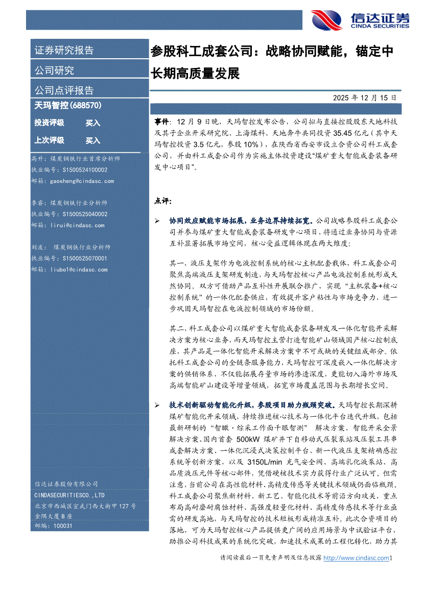 天玛智控:信达证券-天玛智控-688570-参股科工成套公司:战略协同赋能,锚定中长期高质量发展-251215