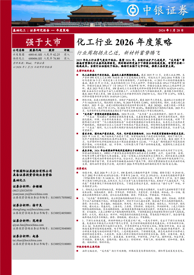 化工行业:中银国际-化工行业2026年度策略:行业周期拐点已近,新材料蓄势腾飞-260128