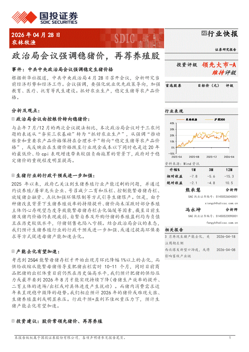农林牧渔行业:国投证券-农林牧渔行业快报:政治局会议强调稳猪价,再荐养殖股-260428