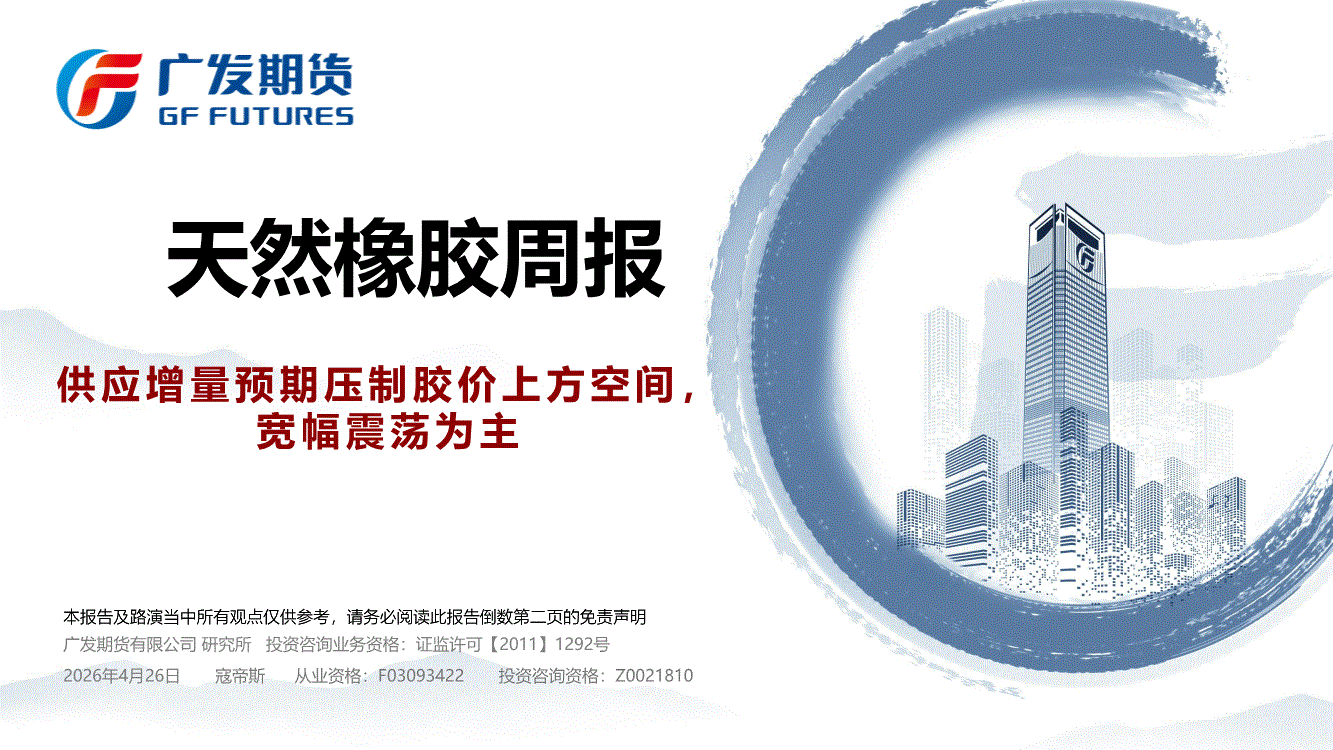 广发期货-天然橡胶期货周报:供应增量预期压制胶价上方空间,宽幅震荡为主-260426