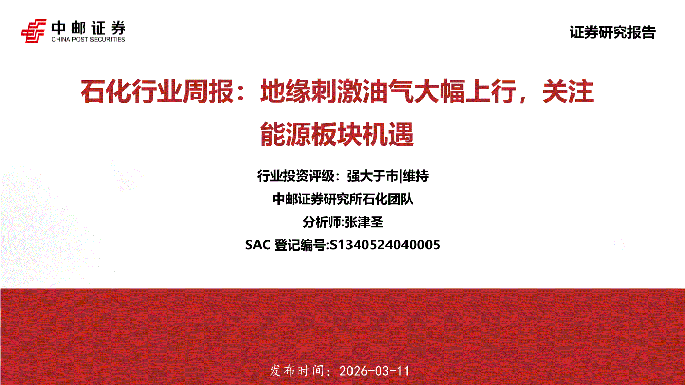 石化行业:中邮证券-石化行业周报:地缘刺激油气大幅上行,关注能源板块机遇-260311