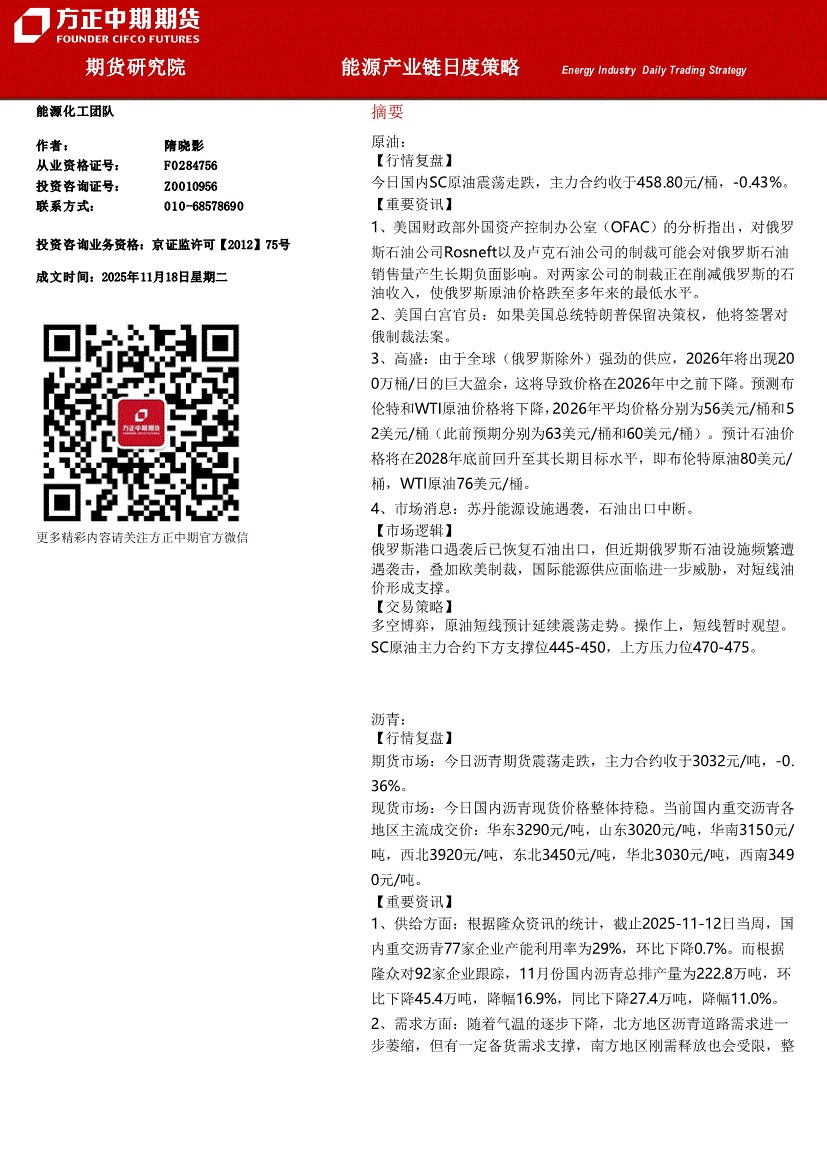 方正中期期货-能源产业链日度策略-251118