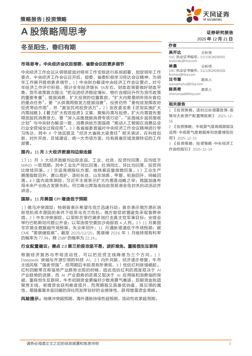 天风证券-A股策略周思考:冬至阳生,春归有期-251221