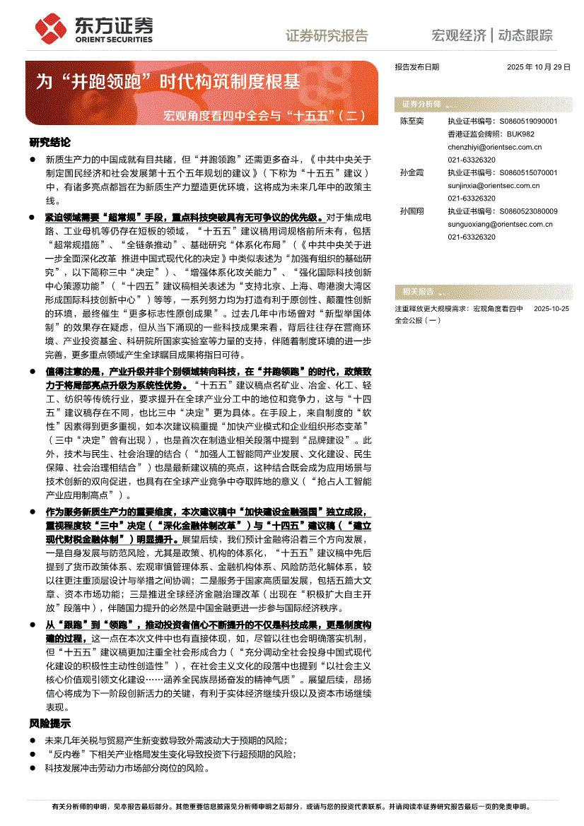 东方证券-宏观角度看四中全会与“十五五”(二):为“并跑领跑”时代构筑制度根基-251029