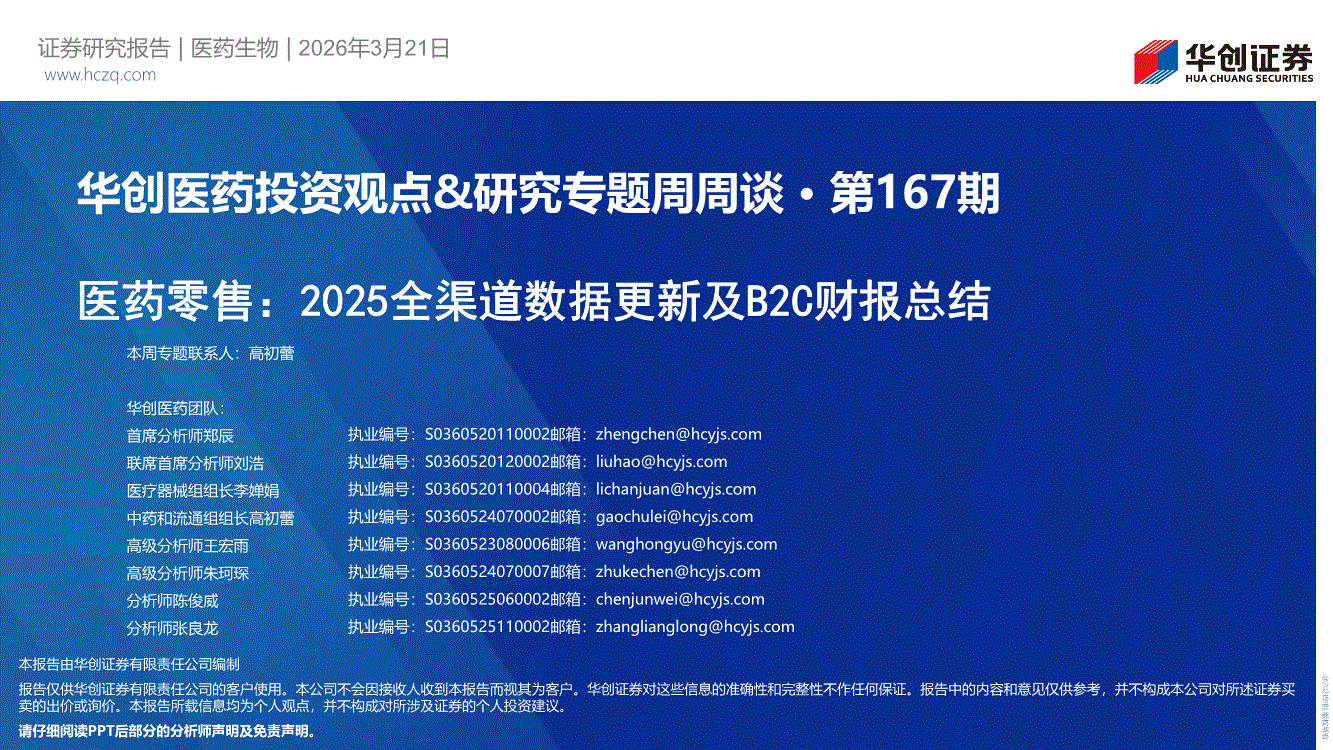 医药行业:华创证券-医药行业投资观点&研究专题周周谈·第167期:医药零售,2025全渠道数据更新及B2C财报总结-260321