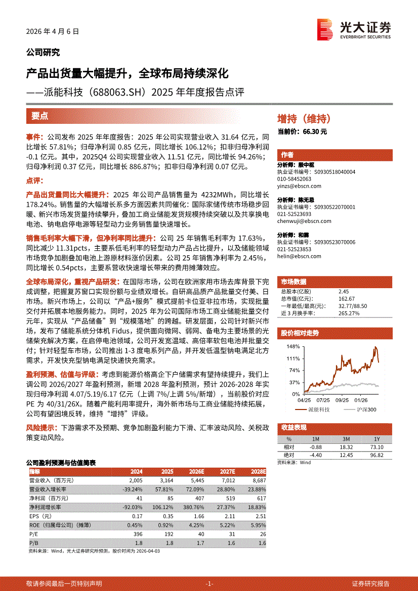 派能科技:光大证券-派能科技-688063-2025年年度报告点评:产品出货量大幅提升,全球布局持续深化-260406