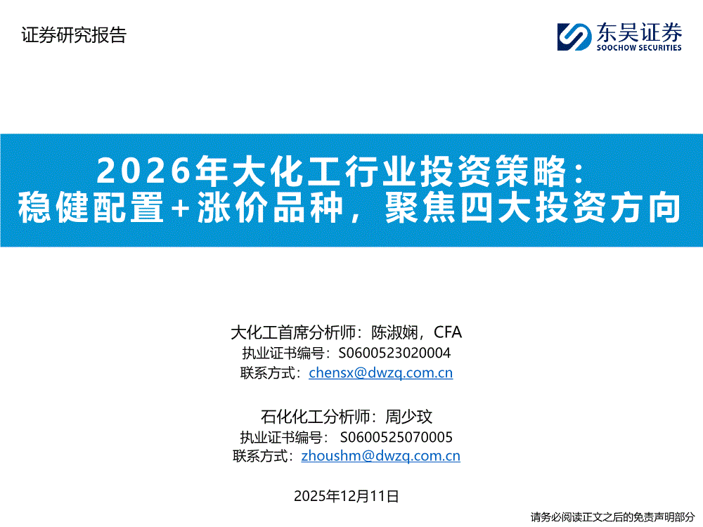 化工行业:东吴证券-2026年大化工行业投资策略:稳健配置+涨价品种,聚焦四大投资方向-251211