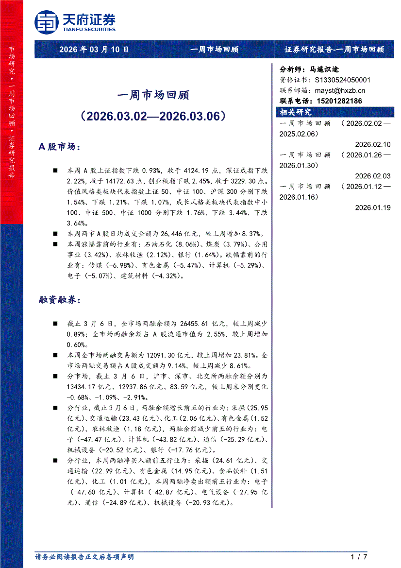 天府证券-一周市场回顾(2026.03.02—2026.03.06)-260310