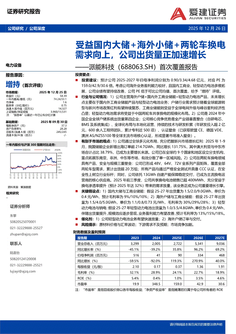 派能科技:爱建证券-派能科技-688063-首次覆盖报告:受益国内大储+海外小储+两轮车换电需求向上,公司出货量正加速增长-251226