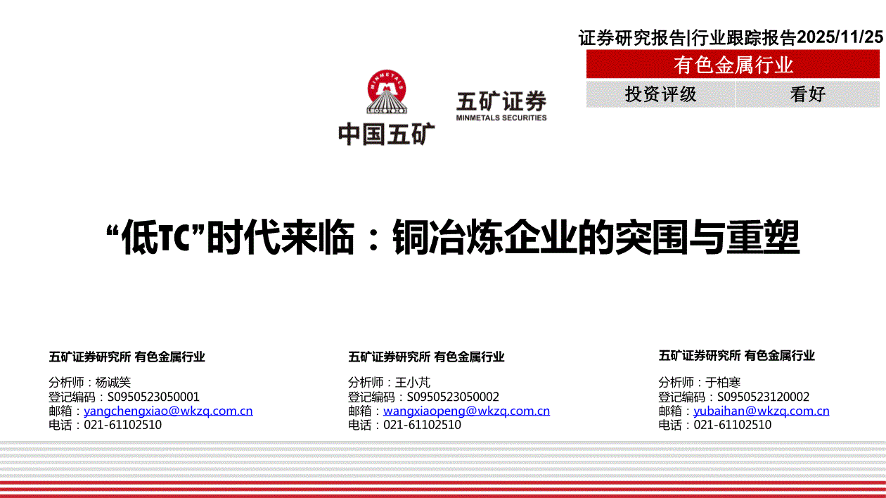 有色金属行业:五矿证券-有色金属行业:“低TC”时代来临,铜冶炼企业的突围与重塑-251125