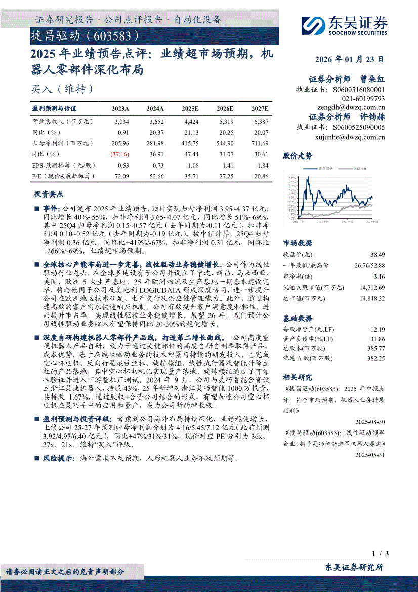 捷昌驱动:东吴证券-捷昌驱动-603583-2025年业绩预告点评:业绩超市场预期,机器人零部件深化布局-260123