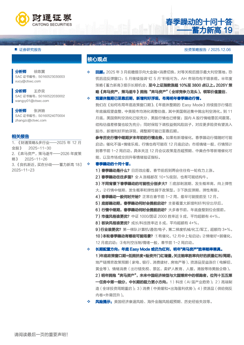 财通证券-蓄力新高19:春季躁动的十问十答-251206