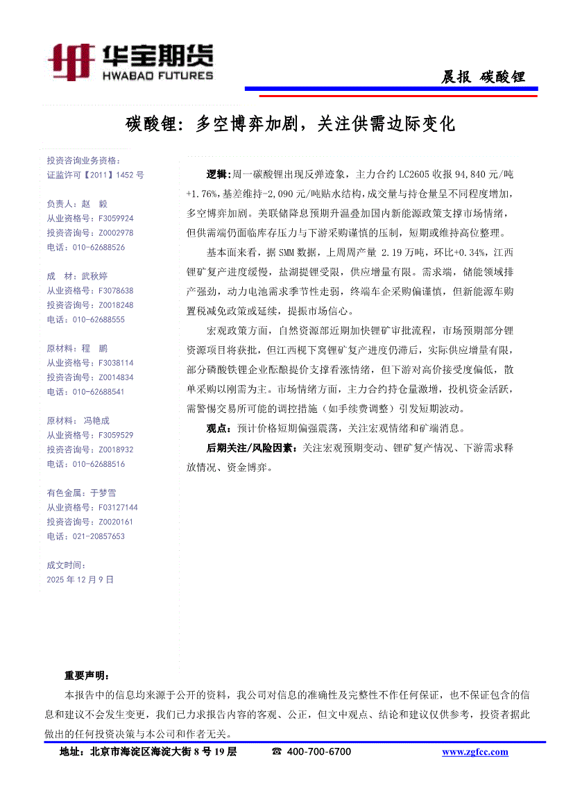 华宝期货-碳酸锂:多空博弈加剧,关注供需边际变化-251209