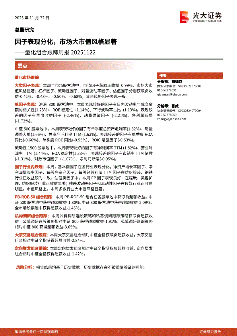 光大证券-量化组合跟踪周报:因子表现分化,市场大市值风格显著-251122