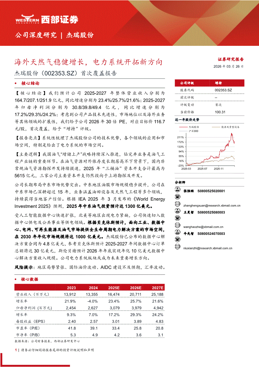 杰瑞股份:西部证券-杰瑞股份-002353-首次覆盖报告:海外天然气稳健增长,电力系统开拓新方向-260326
