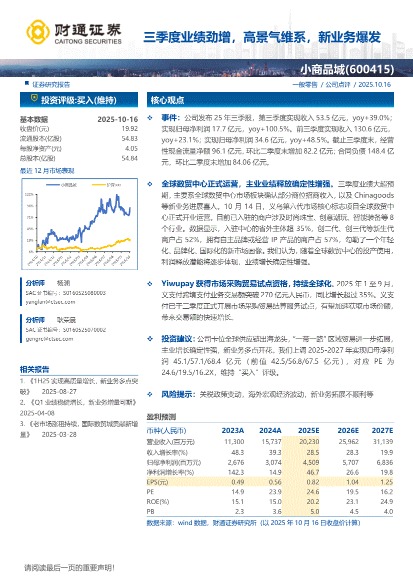 财通证券-小商品城-600415-三季度业绩劲增,高景气维系,新业务爆发-251016
