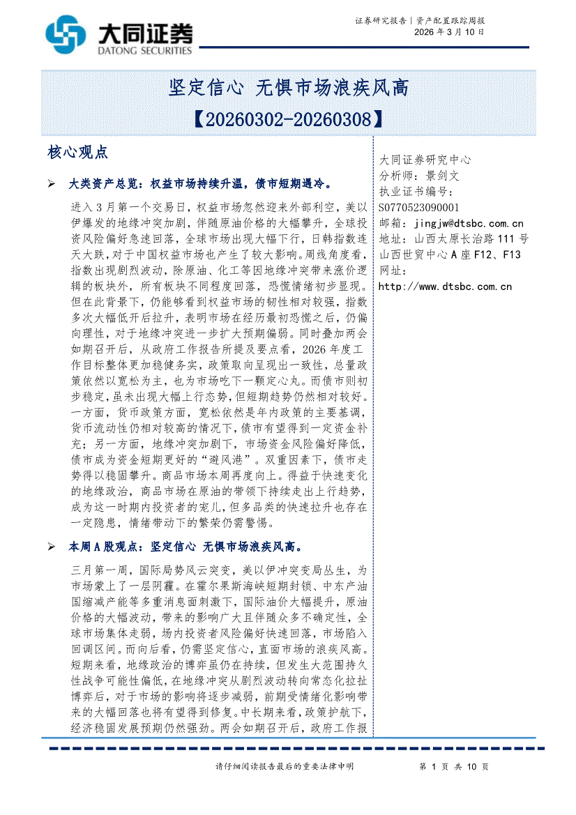 大同证券-资产配置跟踪周报:坚定信心,无惧市场浪疾风高-260310