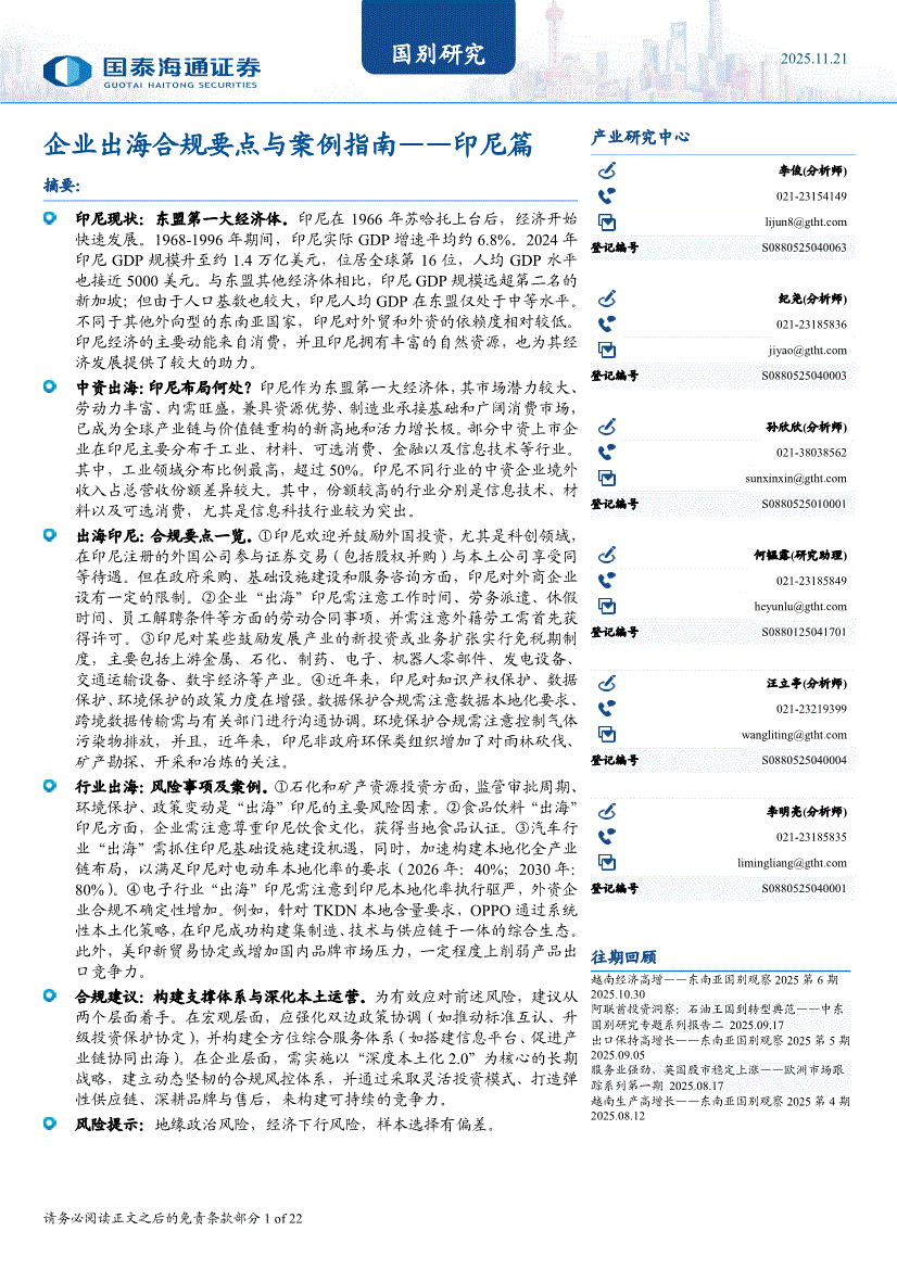 国泰海通证券-国别研究:企业出海合规要点与案例指南——印尼篇-251121