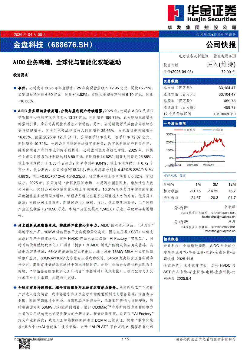 金盘科技:华金证券-金盘科技-688676-AIDC业务高增,全球化与智能化双轮驱动-260405