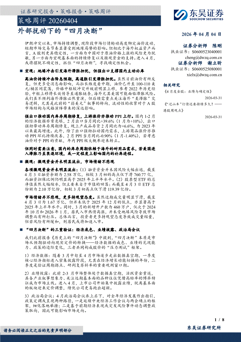 东吴证券-策略周评:外部扰动下的“四月决断”-260404