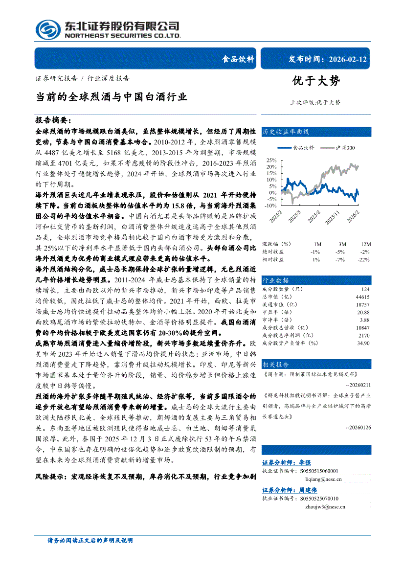 食品饮料行业:东北证券-食品饮料行业:当前的全球烈酒与中国白酒行业-260212