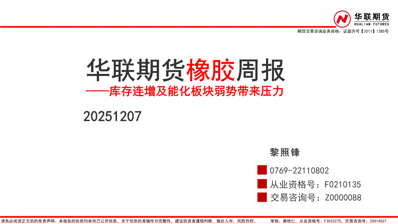 华联期货-橡胶周报:库存连增及能化板块弱势带来压力-251207