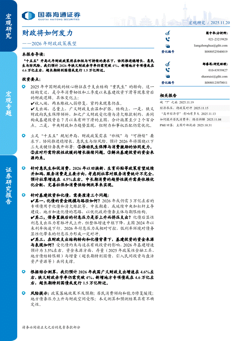 国泰海通证券-2026年财政政策展望:财政将如何发力-251120