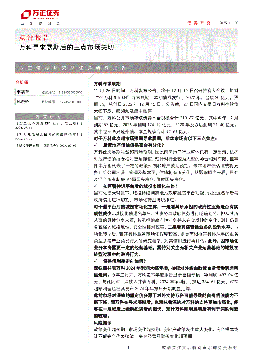 方正证券-点评报告:万科寻求展期后的三点市场关切-251130