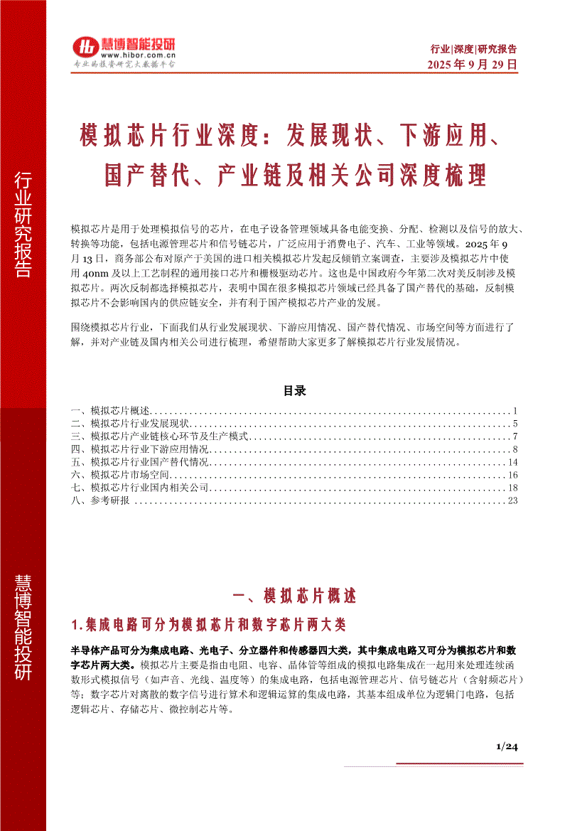 模拟芯片行业:慧博智能投研-模拟芯片行业深度:发展现状、下游应用、国产替代、产业链及相关公司深度梳理-250929