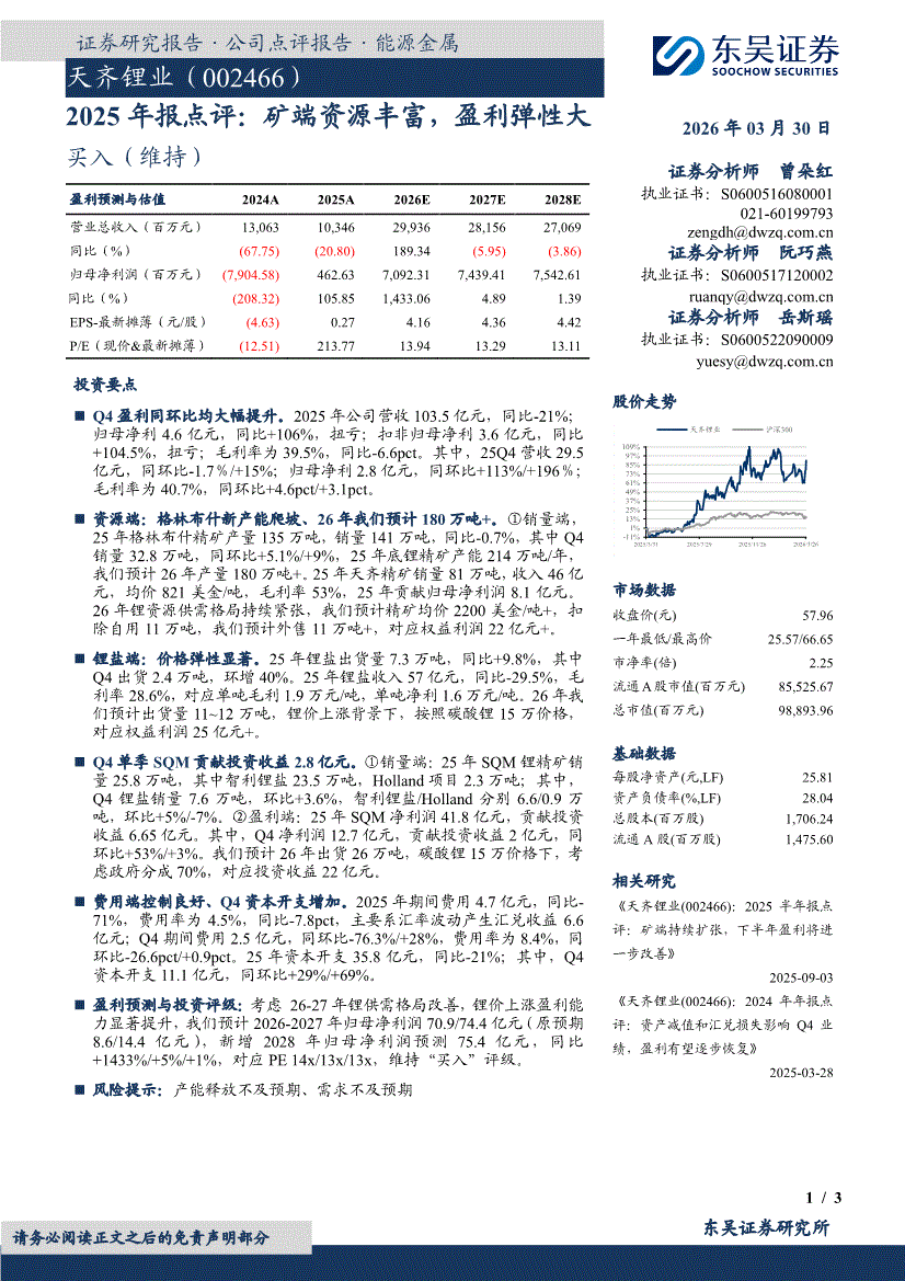 天齐锂业:东吴证券-天齐锂业-002466-2025年报点评:矿端资源丰富,盈利弹性大-260330