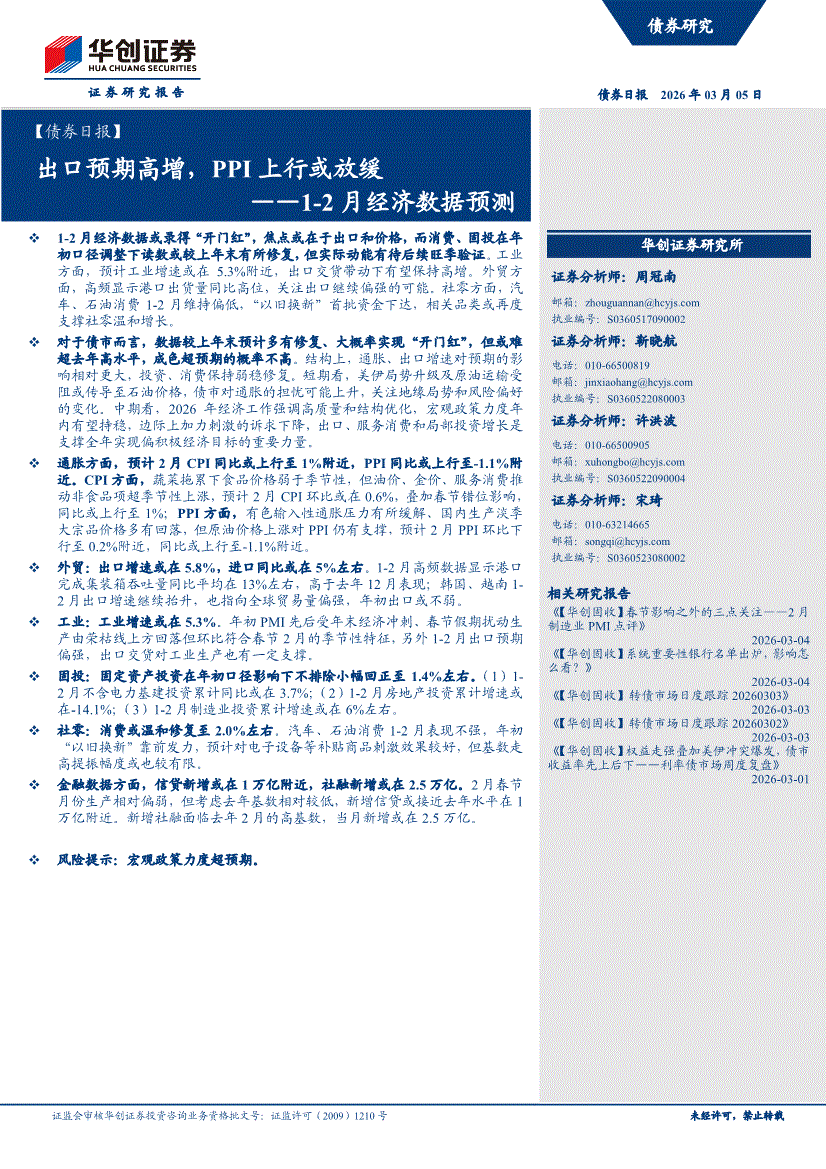 华创证券-1~2月经济数据预测:出口预期高增,PPI上行或放缓-260305